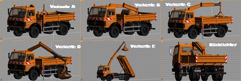 Der Ladekran samt Abstützung und die Greiferschaufel sind so konzipiert, dass diese animiert werden können.